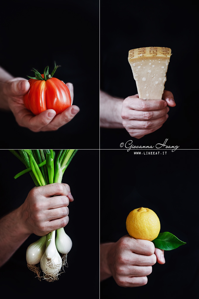 Sicché, la mia proposta culinaria stavolta non sarà condita con note esotiche della mia terra nativa, ma con i profumi di quella adottiva. Non implicherà marinature, tempi di riposo o di preparazione superiori ai 30 minuti. Non dovrete andare a caccia di ingredienti introvabili, vi basterà aprire l’anta del frigorifero (per me una passeggiata nell’orto, hihihi) e afferrare tre semplici ingredienti: pomodori, per fare una zuppa di pomodori arrostiti; cipollotti e limone, per un condimento fresco e leggero. E poichè in cucina vige sempre la regola “non si butta via mai niente” (guai a sprecare), come quarto ingrediente recupereremo anche una crosta di formaggio, in questo caso Parmigiano Reggiano, per fare degli insoliti e croccantissimi pop corn!